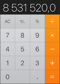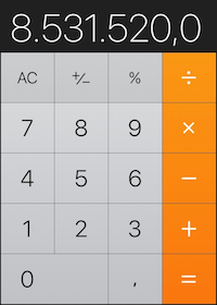 小数点とカンマの扱いが変わりますが、記号は÷や×のままです。これは実物の電卓でも同じです。ドイツのメーカーもロシアのメーカーも、電卓は÷や×を使っています。電気カミソリで有名なドイツのブラウンもかつては電卓を作っていましたが、やはり÷や×を使っています。